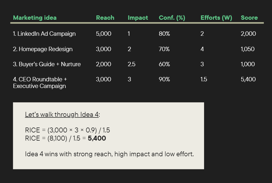 But for the 80% of everyday marketing decisions, RICE brings the clarity you need to lead.